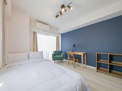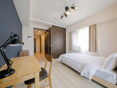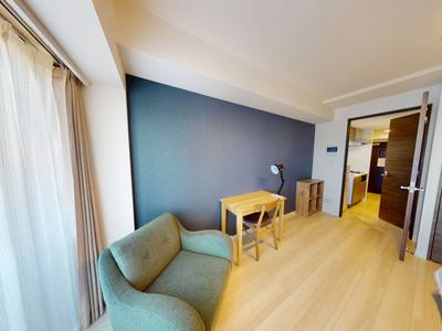Kinshicho is a 9 minute walk from Kinshicho Station. The Kinshicho area has become an attractive town more than ever before due to its recent redevelopment. In this redeveloped area, new stores are popping up one after another, making it a popular spot for many people to visit. There is convenient access to major stations such as Tokyo Station, Shibuya Station and Shinjuku Station without having to transfer trains. There are many nature-rich parks in the heart of Tokyo, where you can enjoy the greenery with TOKYO SKYTREE in the background. The room is accented with navy wallpaper and is stylishly designed with natural wood furniture. Studios are available at this property.