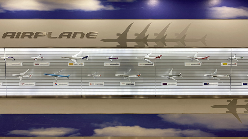5FのTIAT Sky Roadには、各航空会社のモデルプレーンや空港で働く従業員の写真が展示されています。どこの国の、なんという航空会社の飛行機かな?なんて世界中のエアプレーンをチェック!フライトシミュレーターで操縦体験などを楽しむこともできますよ。※新型コロナウイルス感染症対策により、利用が制限されている場合があります。詳しくは施設へ直接お問い合わせください。