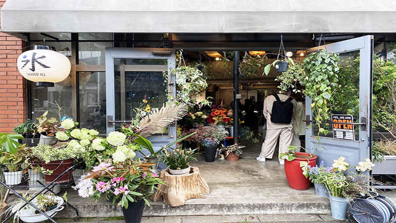 たっぷりの植物が目を引く外観のカフェバーです。コーヒー、スイーツ、クラフトビール、ヴァンナチュールワインやお酒に合う食事などが提供されており、店内にはフラワーショップも併設。たくさんのお花に囲まれながら、なんとも幸せな空間で食事を楽しむことができます。お昼からお酒を嗜み、店内の鮮やかな草花を眺めながらランチ、更に気に入ったお花をそのまま購入してお家に帰るなんてこともできちゃいますね。非日常空間でリラックス気分を味わえる世界観です。