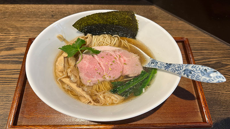 フレンチビストロの元オーナーという、フランス料理出身のシェフが手がけるハイレベルラーメン店。ラストオーダーぎりぎりまで行列が絶えず、人気度がうかがえます。提供されたラーメンを目の前にして、その理由に納得。麺は細めんなのにしっかりと味が染みついており、スープは透明な見た目の通り、さっぱり。チャーシューやその他のトッピングも最高のバランスで計算された黄金比です。脂っこくないので、老若男女に支持されているようで店内には男性客はもちろん、お子様連れやカップル、女性おひとり様の姿も見受けられました。完食しても罪悪感や胃もたれなし、ラーメンの概念が変わる名店です。